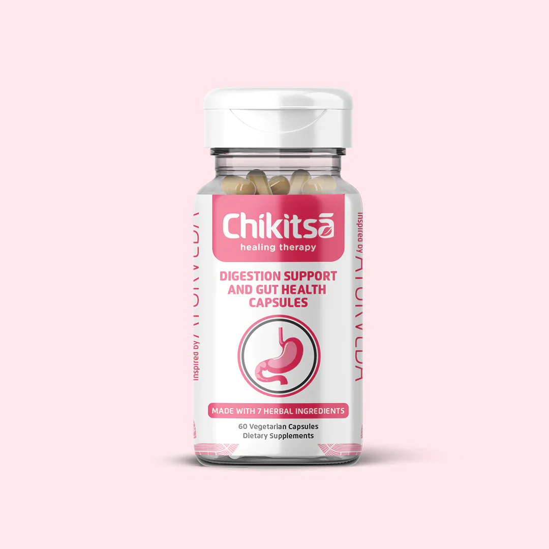 Chikitsa Digestion Support combines ancient Ayurvedic wisdom with modern wellness science to support optimal digestive function. This comprehensive formula features Ajwain seeds, Ginger rhizome, Senna leaf, Cinnamon bark, Fennel seed, and Licorice root for digestive harmony, bowel regularity, and gut health. Manufactured in FDA-registered facility following GMP standards for superior quality and purity.