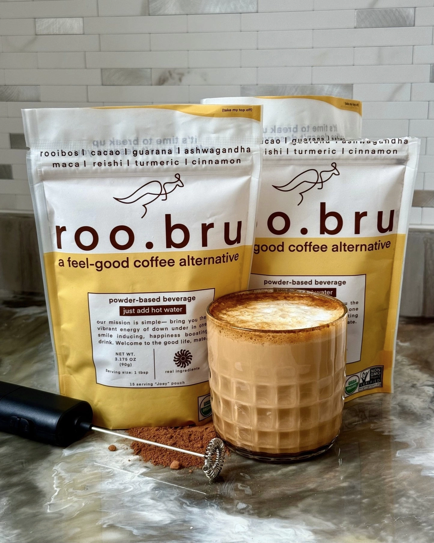 Unlike coffee which can aggravate the stomach and cause reflux, roo.bru supports digestive health with prebiotic fiber and anti-inflammatory compounds. Every sip delivers antioxidants, vitamins, and minerals that support immunity, focus, digestion, and overall wellness. The flavor profile combines notes of chai, hot chocolate, and coffee for a unique, satisfying taste. Vegan, USDA Organic, and Non-GMO Certified with no artificial ingredients, additives, or gluten.