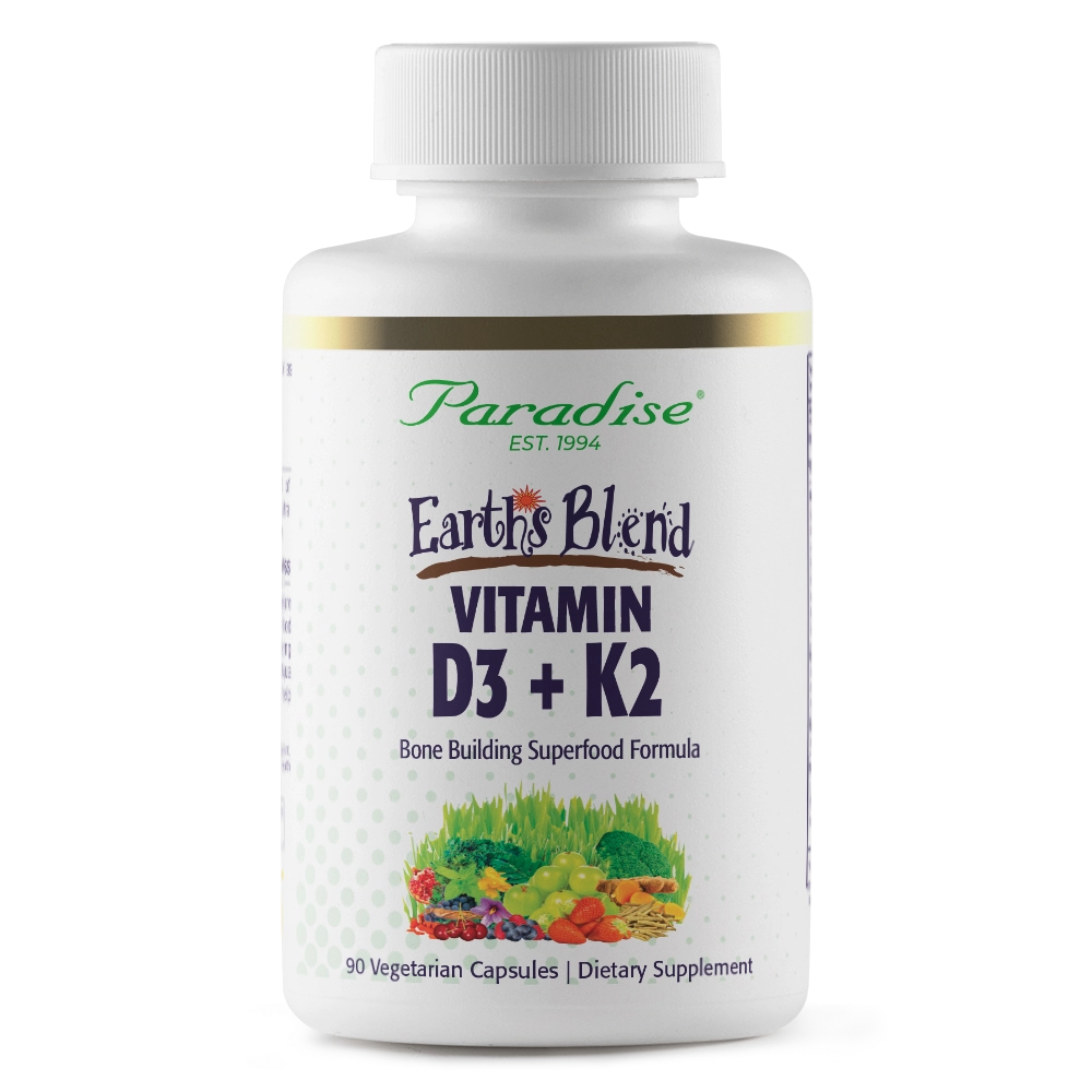 Earth’s Blend Vitamin D3 & K2: Synergistic D3 (vegan, lichen-derived) and K2 (MK-7, natto-derived). Supports bone, immune, and heart health. Dosage: 1 vegetarian capsule daily. Allergen friendly. Only plant-based sources, non-GMO, no fillers/binders.