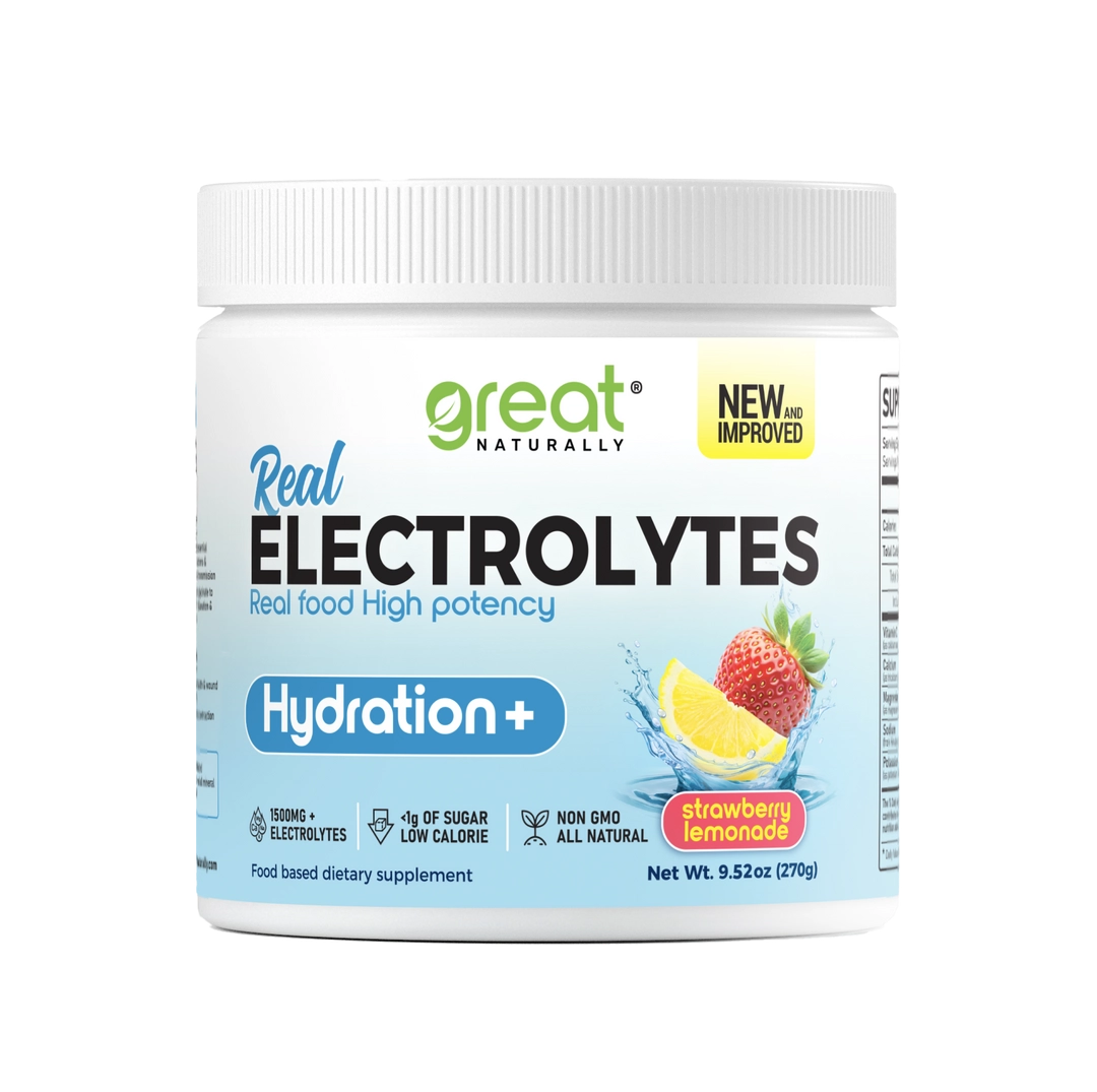 Hydration+ contains over 2000 mg of Real Food. Whole food electrolytes from coconut water, celery juice, and cucumber juice offer essential minerals like potassium, sodium, magnesium, and calcium, supporting hydration and overall health. Coconut water provides potassium and magnesium for fluid balance, muscle function, and energy, along with antioxidants. Celery juice is rich in potassium which is important for overall mineral balance. Cucumber juice provides hydration, potassium, magnesium, and antioxidants. These sources naturally replenish electrolytes, promoting optimal balance and well-being.