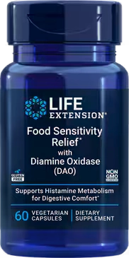 Relieve food sensitivity symptoms with Food Sensitivity Relief featuring DAO enzyme. This formula helps break down histamine in foods, reducing occasional digestive discomfort.
