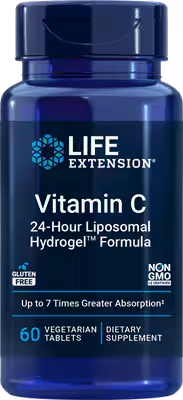 Vitamin C 24-hour Liposomal Hydrogel: High absorption vitamin C. Description: Stays in system up to 24 hours, 7x higher absorption, immune/cellular/skin health. Ingredients: Liposomal vitamin C with fenugreek hydrogel, sunflower-derived lipids. Dosage: Not given; tablet form. Supp.: General warnings about supplement use.