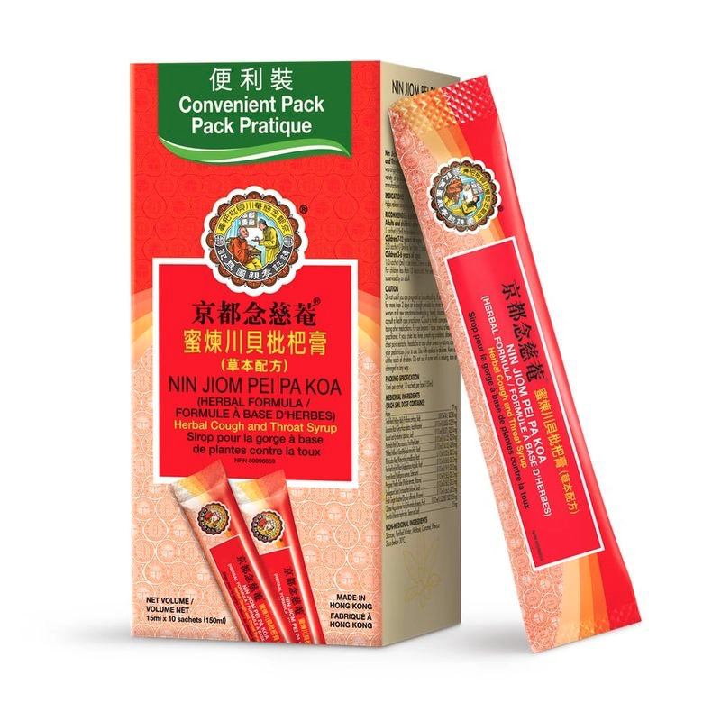 Never be without your trusted cough relief with Nin Jiom Pei Pa Koa Convenient Pack, featuring 10 individual 15ml sachets of the world-famous Nin Jiom Pei cough syrup. These portable, single-serving packages make it easy to carry respiratory relief wherever you go – perfect for travel, office, school, or purse. Each sachet contains the same premium herbal formula trusted for over 160 years, combining loquat leaf, fritillaria bulb, and natural honey for effective cough suppression and throat soothing. The convenient packaging ensures fresh potency with each use while providing precise dosing for optimal therapeutic benefit. Ideal for busy professionals, frequent travelers, and families who need reliable respiratory support at a moment’s notice.