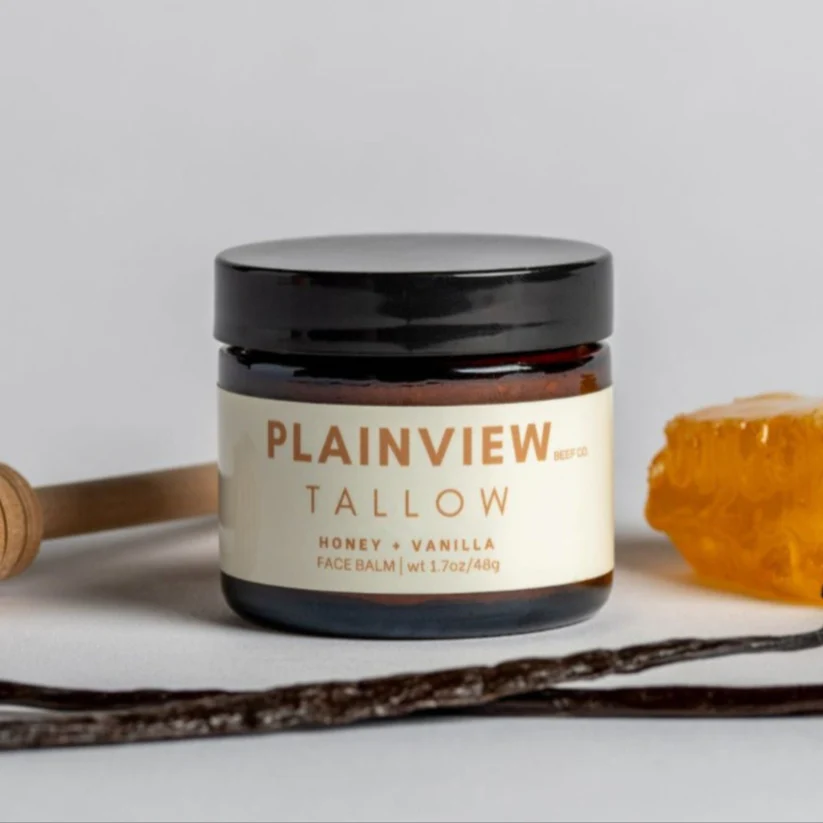 Plainview Beef Co.’s Honey Vanilla Tallow Face Balm is a rich, heritage‑inspired moisturizer crafted to deeply nourish and soften the skin with a warm, comforting aroma. This 1.7 oz balm blends traditional tallow with gentle, sweet notes of honey and vanilla, creating a soothing skincare experience that feels both grounding and indulgent.