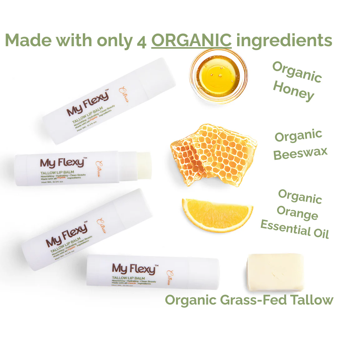 MyFlexy.com’s Tallow Lip Balm 3 Pack offers a deeply nourishing, traditional approach to lip care with a simple, skin‑compatible formula designed to soothe, soften, and protect. Each balm is crafted from high‑quality tallow and complementary natural oils, creating a rich, conditioning texture that melts effortlessly into dry or chapped lips.