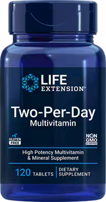 Two-Per-Day: Multivitamin/mineral tablet. Typical: 2 tablets daily. High-potency formula for comprehensive daily nutrition. Contains vitamins A, C, D, B-complex, zinc, selenium, etc.